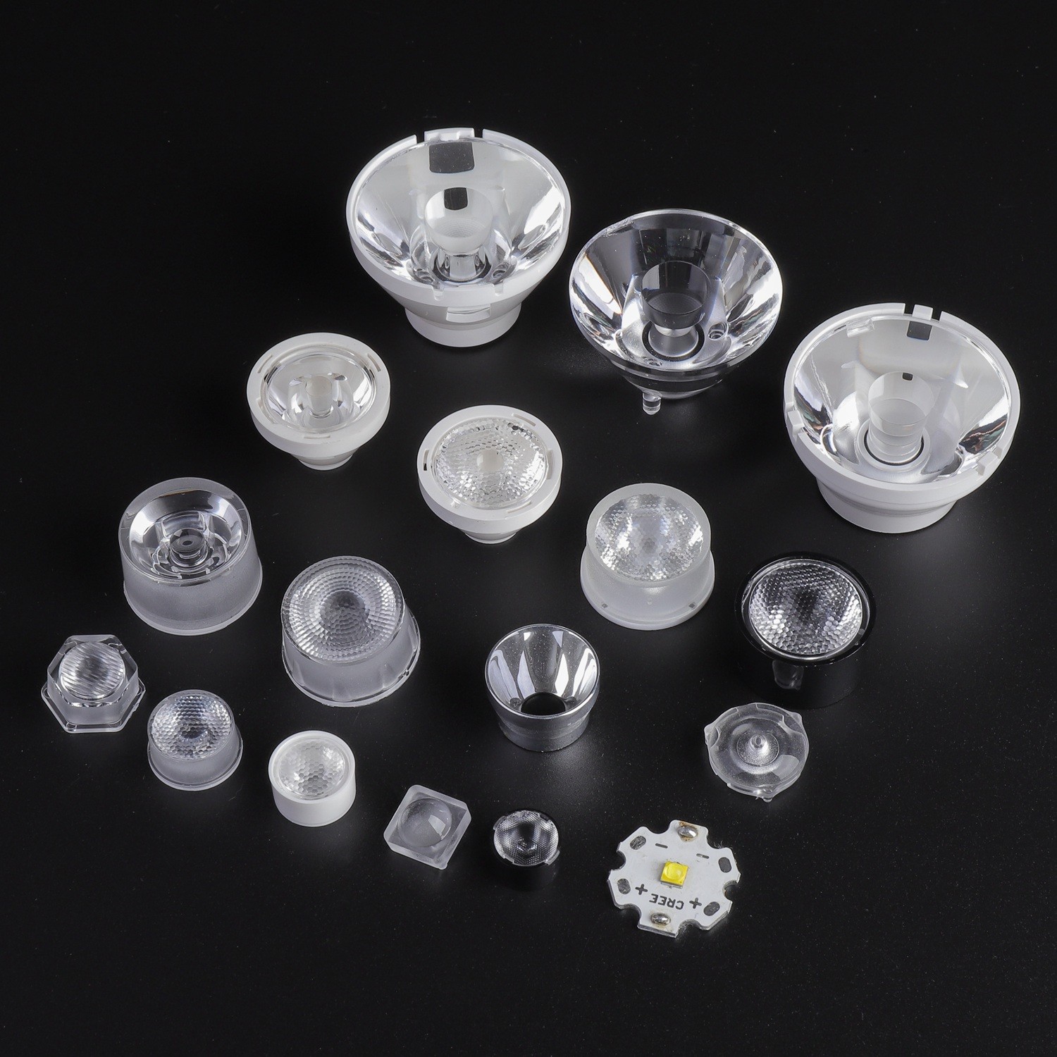 Bahan Lensa Optik Led terbuat dari PMMA bermutu tinggi, tingkat transmisi di atas 93%.
